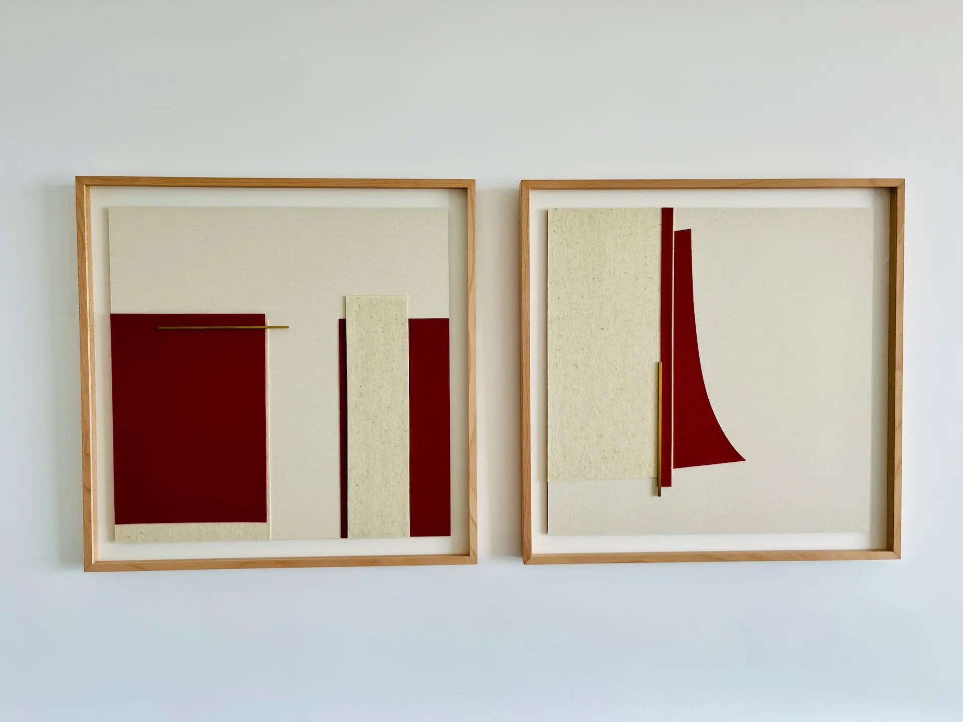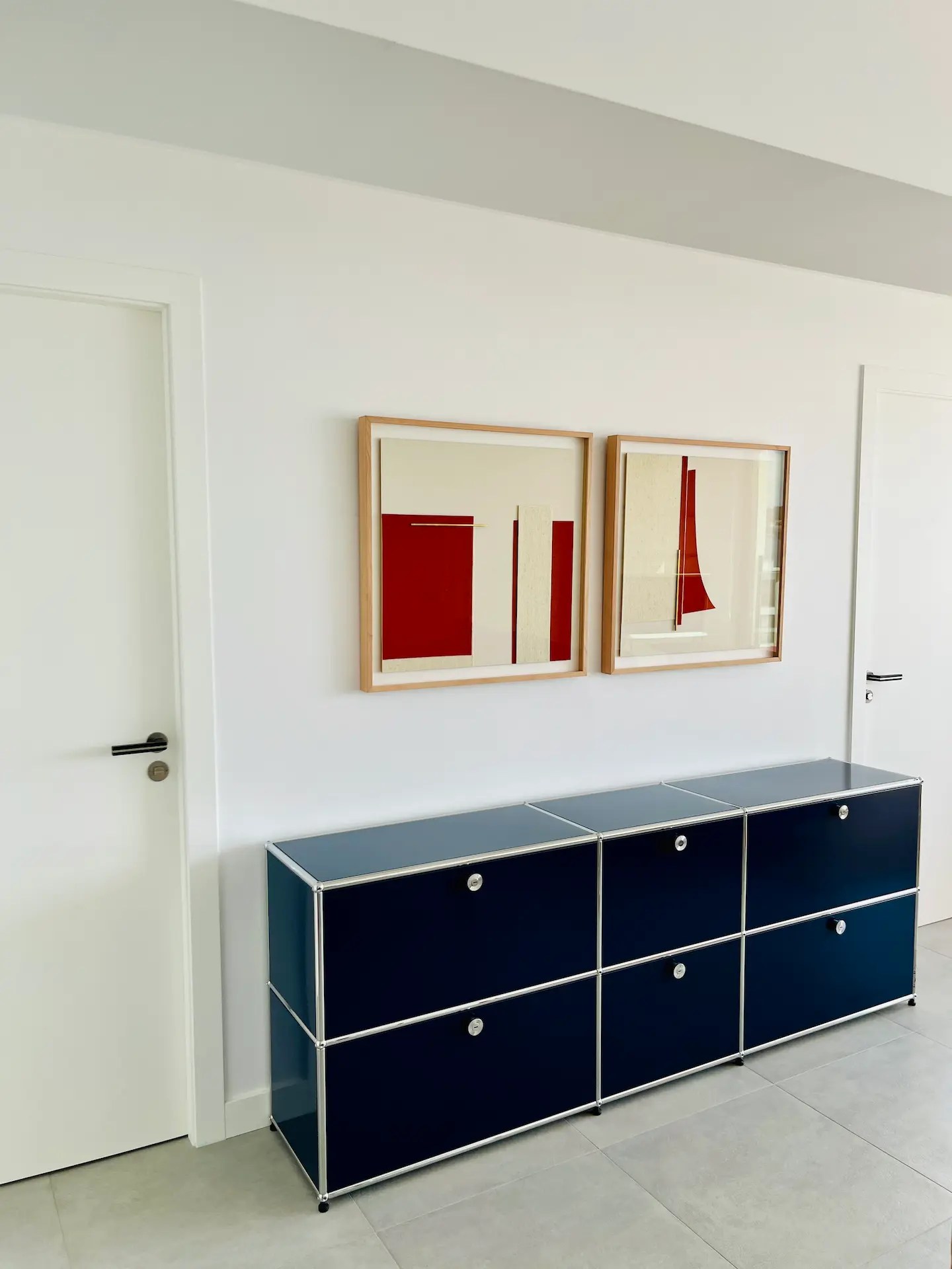 Los cuadros en tonos rojos que hay sobre el aparador azul son obra de Mónica Baquedano, la gran artista detrás de Línea Lateral.